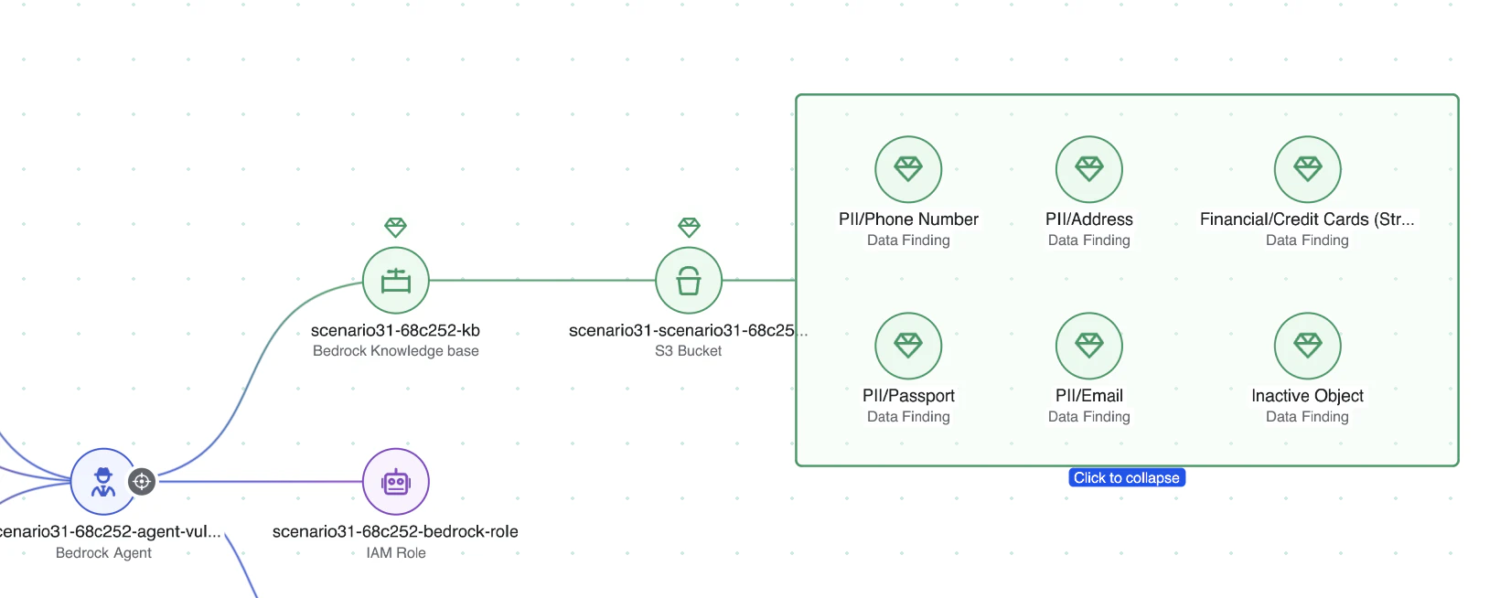 Individually, these signals may appear benign. But together they form a toxic combination — making this a high-risk AI agent within your cloud environment with a considerable blast radius.