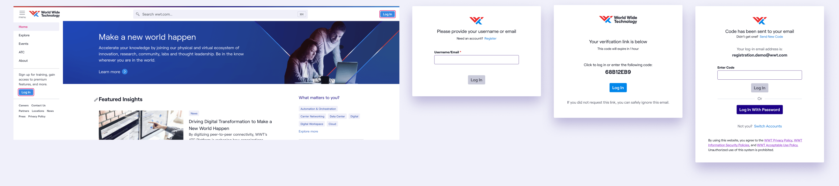 WWT is providing users an option to login without having to use a password. Users are authenticated by receiving a convenient code to their inbox.