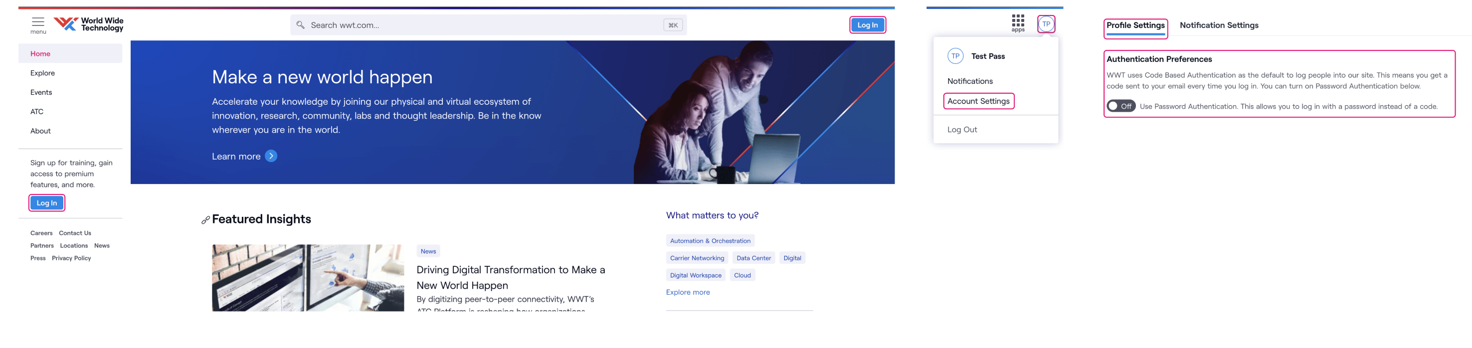 - Seamless login across the different WWT platforms (ATC Connect, wwt.com) and across different browsers/devices